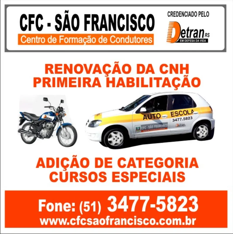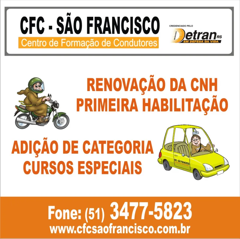 Para auxiliar nesse processo de tirar a data-link="carteira-motorista, carteira de motorista", o CFC São Francisco, com 28 anos de experiência no mercado, oferece formação completa para quem busca a CNH, possuindo sede em Canoas, mas também atendendo moradores de cidades como Nova Santa Rita, Sapucaia, São Leopoldo, Novo Hamburgo e Esteio.